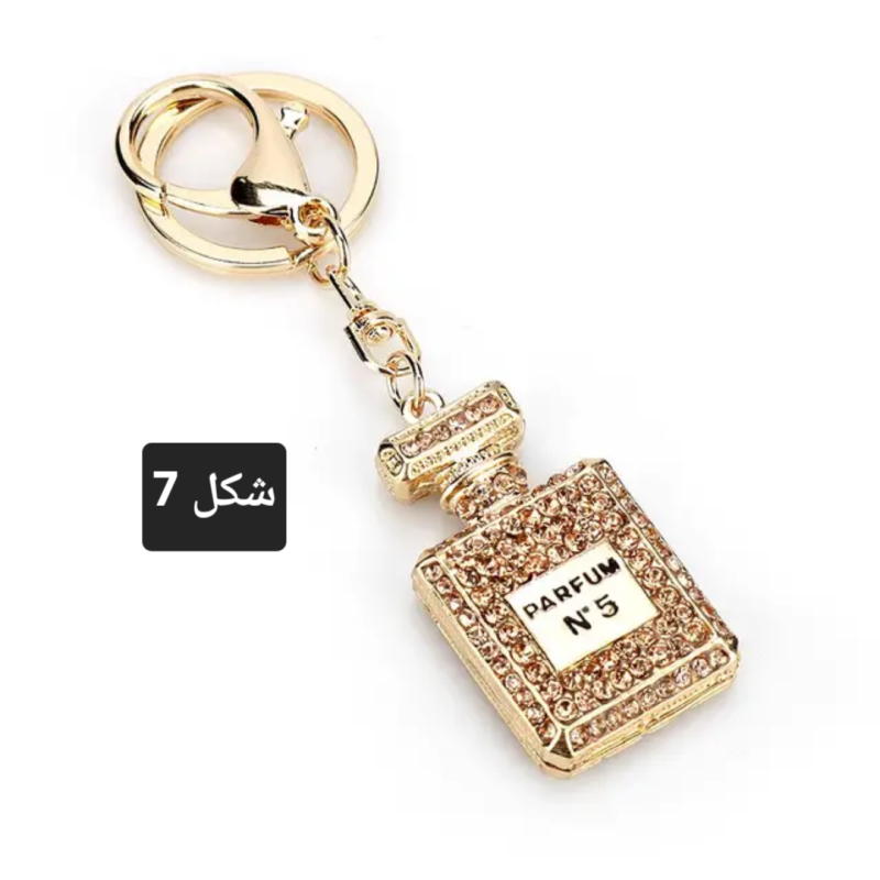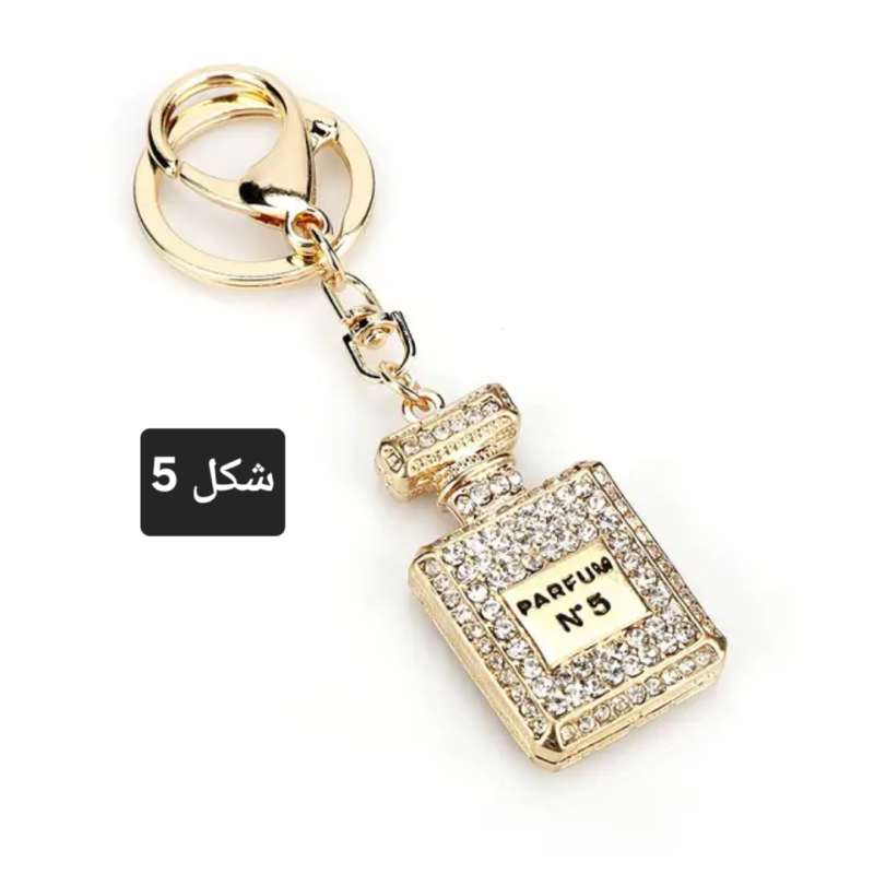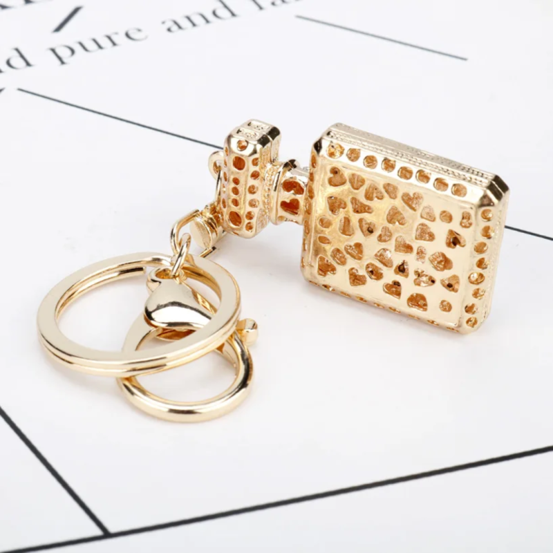 سلسلة مفاتيح كريستال مبتكرة من حجر الراين زجاجة عطر من الفصوص الكريستال وسلسلة معدنية بالكامل موضة للجنسين سلسلة مفاتيح