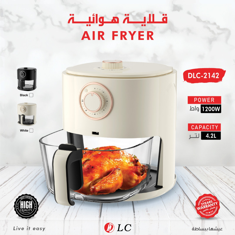 مقلاة هوائية زجاجية مرئية بسعة 4.2 لتر وقوة 1200 واط، مثالية لطهي صحي وسريع