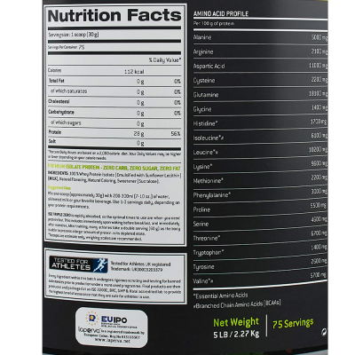 لابيرفا ايزو بروتين تربل زيرو بيلجين كوكيز وكريمة 5 باوند هو مكمل غذائي عالي الجودة مصنوع من مزيج من بروتين مصل اللبن المعزول والبروتين الزلالي المعزول والبروتين الزلالي. يوفر هذا المكمل 25 جرامًا من البروتين لكل حصة، وهو خالٍ من السكر واللاكتوز والكربوهيدرات. كما أنه غني بالعناصر الغذائية الأخرى مثل الأحماض الأمينية BCAAs، والتي تساعد على تسريع عملية الاستشفاء بعد التمرين.