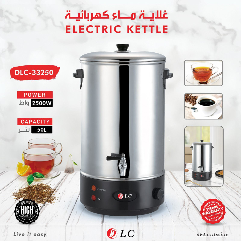 وصف المنتج: استمتع بتسخين كميات كبيرة من الماء بسهولة وسرعة مع غلاية LC الكهربائية بسعة ضخمة تصل إلى 50 لتر. تتميز الغلاية بهيكل متين من الستانلس ستيل المقاوم للصدأ يضمن أداءً طويل الأمد ونظافة مثالية. تعمل بقدرة 2500 واط لتسخين سريع وكفاءة عالية، كما تحتوي على مفتاح للتحكم بالحرارة ووظيفة الحفاظ على السخونة لضمان جاهزية الماء في أي وقت. مثالية للاستخدام في المناسبات، المطاعم، المقاهي، أو المكاتب.