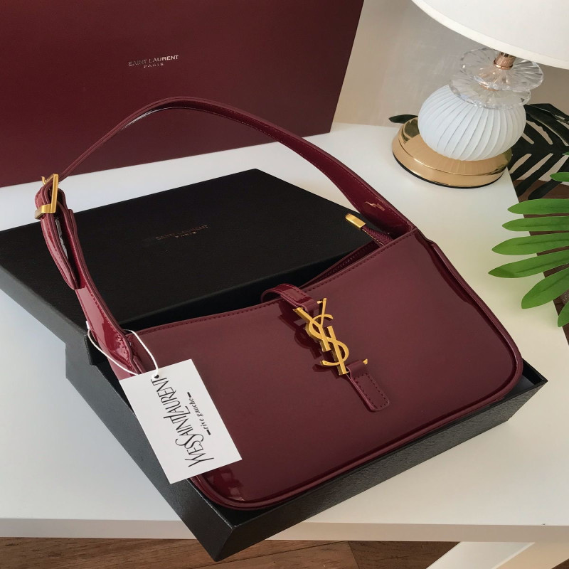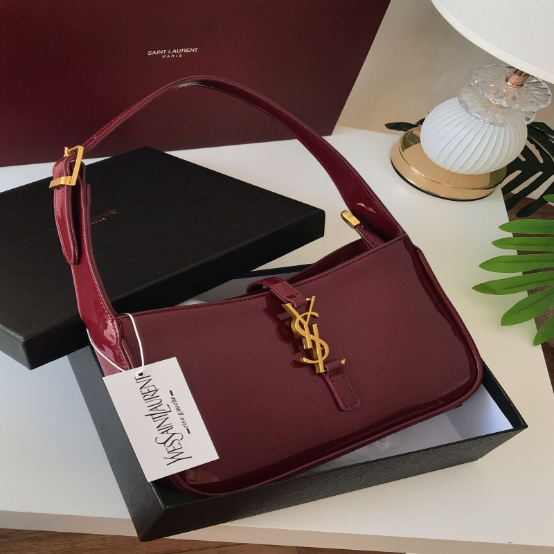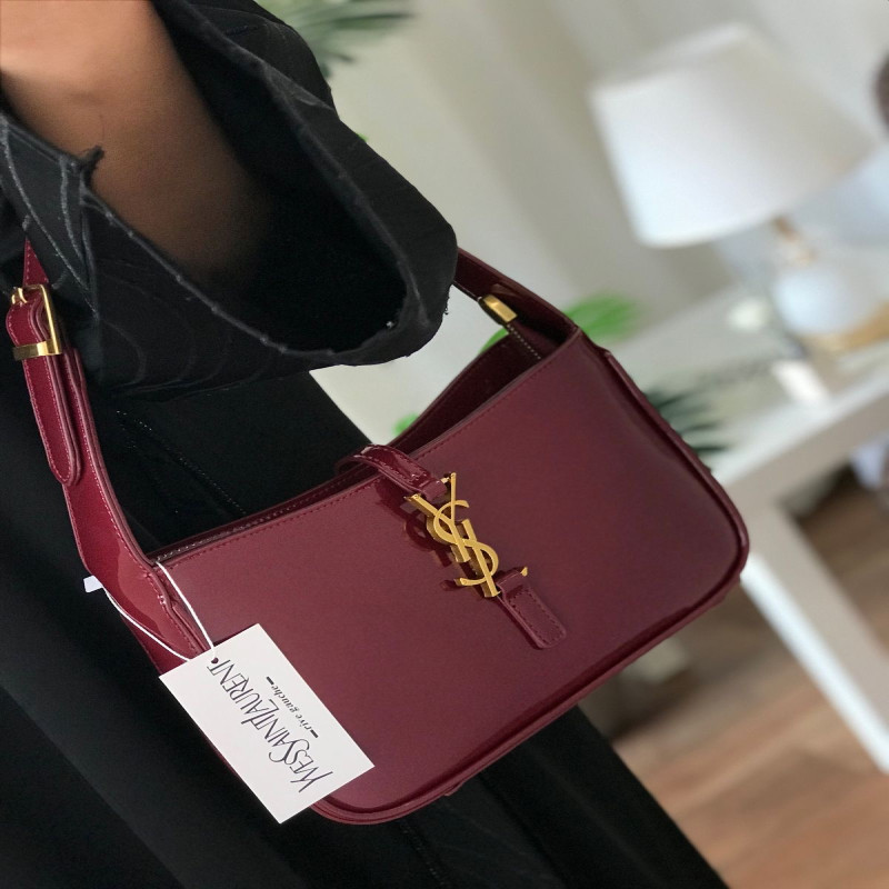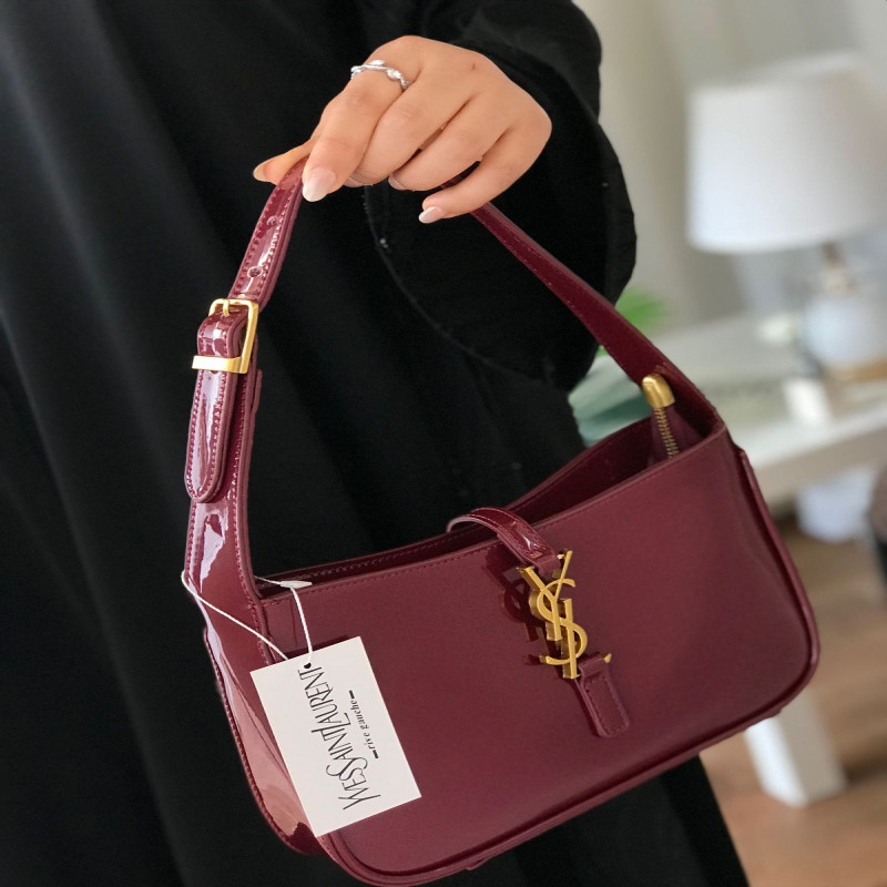 شنطة سان لوران YSL طبق الأصل باللون العنابي اللامع بتصميم فاخر وأنيق، مثالية لكل من تبحث عن لمسة أنوثة فخمة في إطلالتها. مصنوعة من جلد لامع بجودة عالية، مع شعار YSL الذهبي البارز ولمسات تصميم راقية تناسب المناسبات والخروجات.