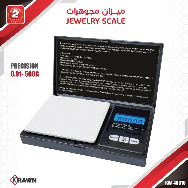 ميزان كراون KW-9046010 هو ميزان رقمي دقيق يزن من 0.01 إلى 500 جرام.
