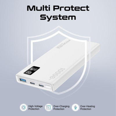 Bolt-10PD هو الحل النهائي للطاقة في كل رحلة! أطلق العنان للطاقة اللامحدودة مع بطارية بوليمر الليثيوم بسعة عالية تبلغ 10000 مللي أمبير، ومترافقا مع ثلاثة منافذ USB ذكية تناسب احتياجات الشحن المتنوعة لديك. استفد من قدرات الشحن السريع من خلال منفذ USB-C2 بقوة 20 واط للإدخال/الإخراج، وبالإضافة لمنفذين للإخراج، مخرج USB-C1 بقوة 20 واط ومخرج USB-A بقوة 22.5 واط QC 3.0، بينما شاشة LCD الذكية تُبقيك على اطلاع على حالة البطارية لديك. Bolt-10PD باوربانك محمول وصغير الحجم ويضمن الطاقة المتواصلة لأجهزتك أثناء التنقل، مُحمي بإجراءات وقائية ضد الشحن الزائد والسخونة الزائدة.