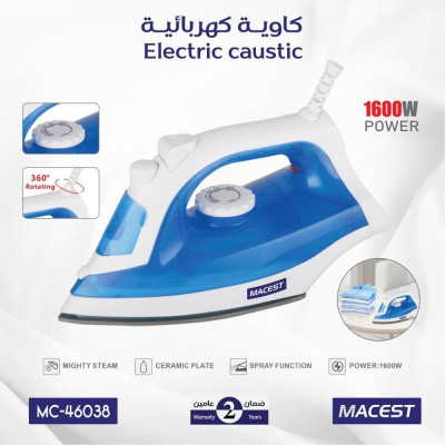 مكواة الكهربائية MACEST MC-46038. صُممت هذه المكواة لتمنحك أداءً استثنائيًا وكفاءة عالية في كيّ جميع أنواع الأقمشة،