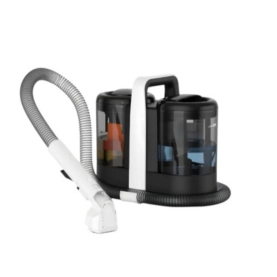 الأجزاء الشفافة لخزانات الماء تسمح بمراقبة مستوى الماء والأوساخ بسهولة. الجهاز مزود بمقبض علوي لسهولة الحمل والتنقل، وخرطوم طويل ومرن يصل إلى الأماكن الصعبة.