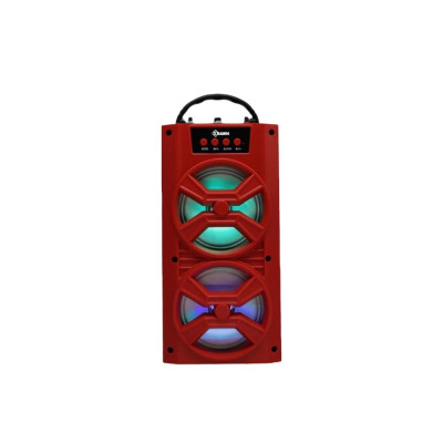 مكبر صوت محمول من ماركة "KRAWN" يتميز بتصميم عصري باللون الأحمر.