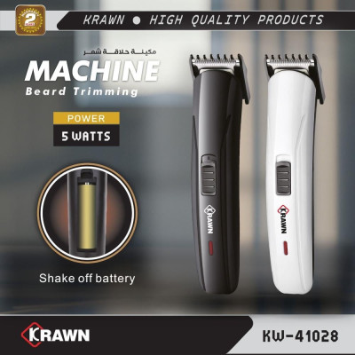 ماكينة حلاقة وتشذيب اللحية Krawn هي الأداة المثالية للحصول على مظهر أنيق ومحدد بدقة. تتميز بتصميم عصري وأنيق يتوفر بلونين، الأسود الكلاسيكي والأبيض النقي، لتناسب ذوقك. تعمل ببطارية قوية بقوة 5 واط، مما يضمن أداءً فعالًا ومستمرًا لتشذيب اللحية أو الشعر بسهولة وسرعة.