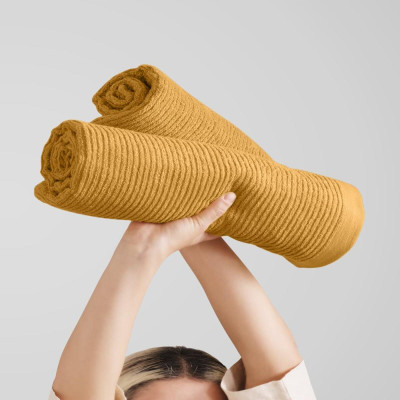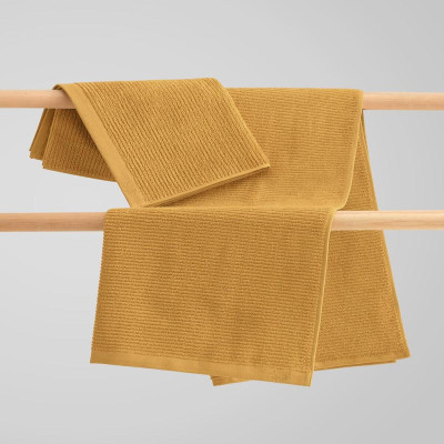 - مناشف باللون الأصفر منشفة وسط بمقاس 70X140 ومنشفه للمغسلة بمقاس 50X90