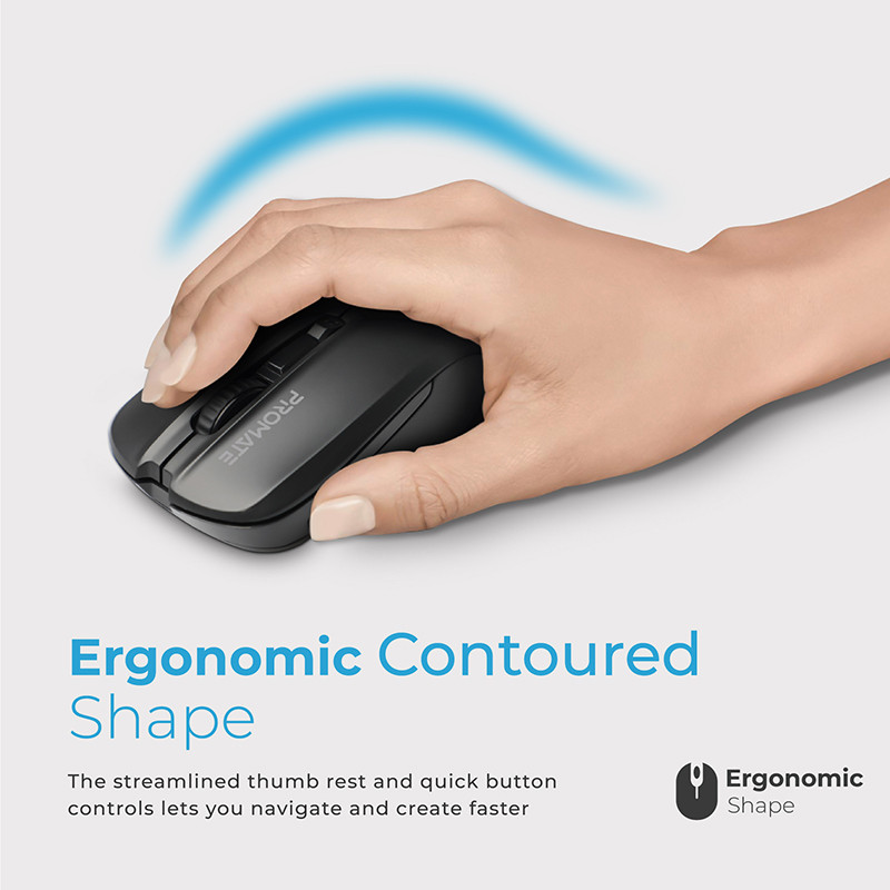 يوفر التصميم المريح لماوس Promate Contour اللاسلكي أداءً خاليًا من التعب حتى تتمكن من تحسين إنتاجيتك مع الاستمتاع بمقبض مريح.