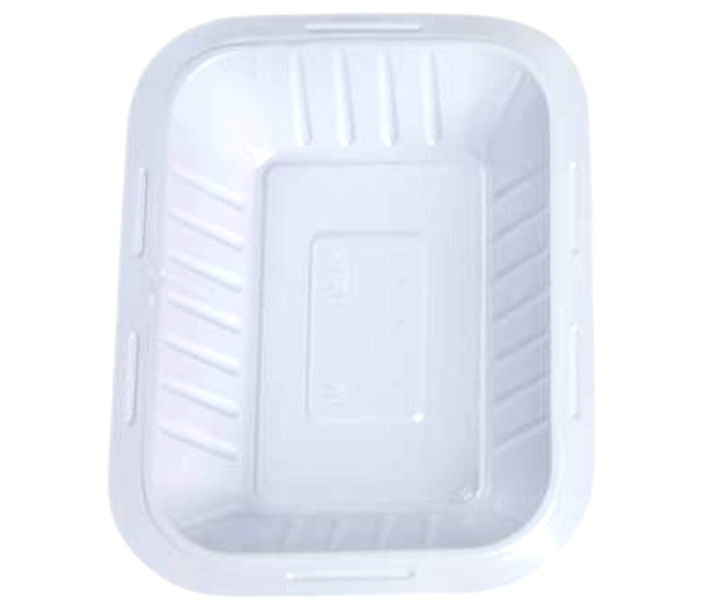 صحن بلاستيك ابيض مستطيل رقم نصف متوفر ربطة ٥٠ حبة + كرتون 1-5569