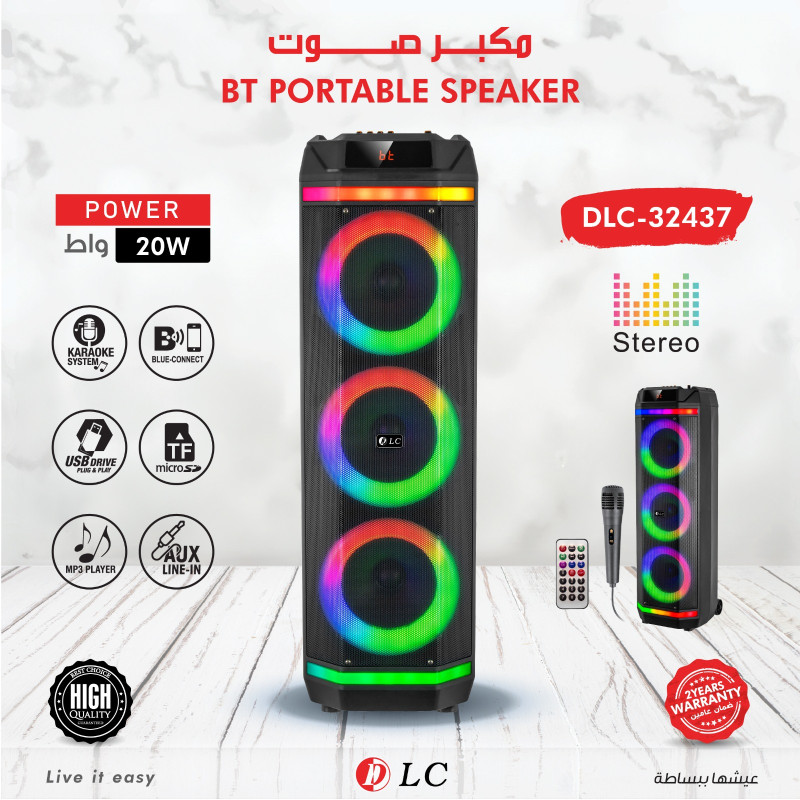 صُمم مكبر الصوت المحمول عالي الطاقة بتقنية البلوتوث بقوة 20 واط ليمنحك تجربة صوتية نابضة بالحياة مع جودة صوت استثنائية ومؤثرات بصرية جذابة.
