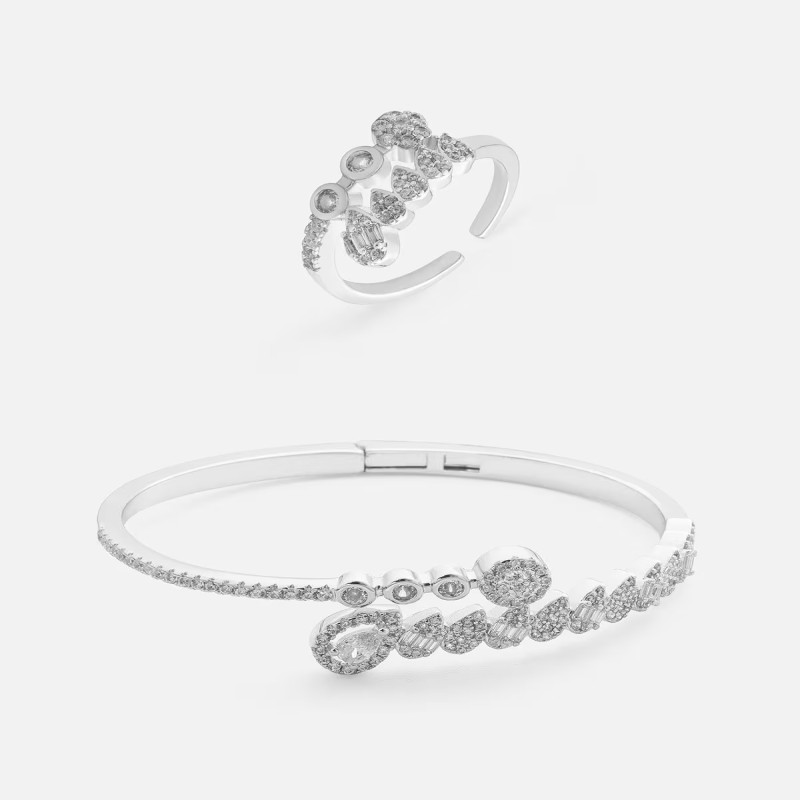 - الـــلــــــــون: الفضي بتصميم أنيق متداخل و مرصع بفصوص وأحجار الزركون اللامع