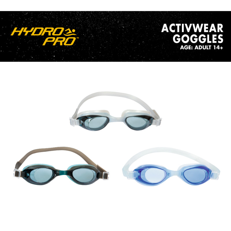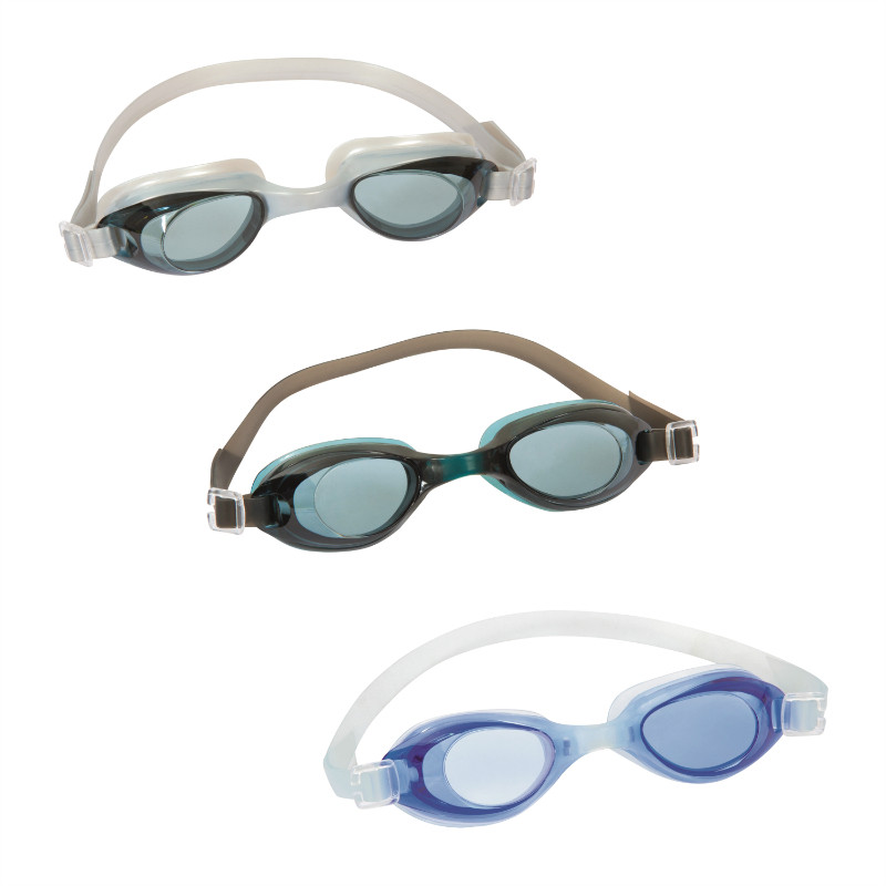 Enhance your swimming experience with Hydro-Pro Blade Goggles from Bestway. Designed for ages 14 and up, Blade Goggles pair comfort with performance. Available in 3 assorted colors, the soft and comfortable eye goggles protect your eyes while swimming. The tinted, polycarbonate, anti-fog coated lenses provide protection from glare and come with a 100% UV protection coating. The fully adjustable head strap keeps your goggles in place so you can focus better on swimming. Whether you're doing the backstroke or butterfly, you'll shine with Hydro-Pro Blade Goggles!