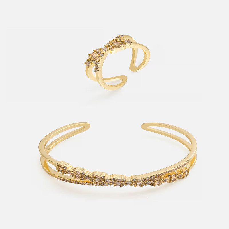 - الـــلــــــــون: الذهبي بتصميم كلاسيك راقي متداخل و مرصع بفصوص وأحجار الزركون اللامع
