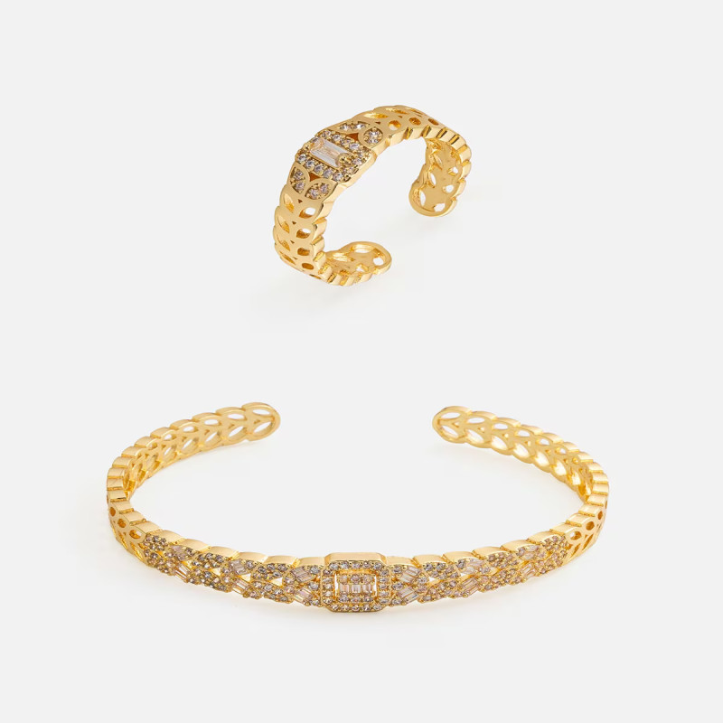 - الـــلــــــــون: الذهبي بتصميم راقي وعريض مرصع بفصوص وأحجار الزركون اللامع