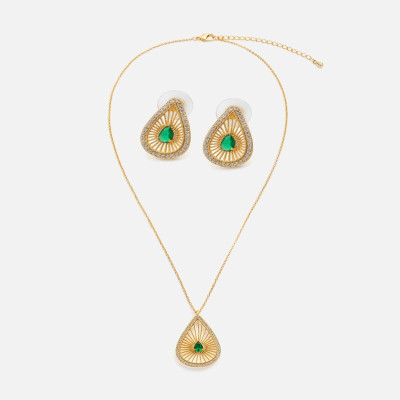 - سلسال وحلق بتصميم حلية بشكل دمعة بلون أخضر مرصعة بفصوص الزركون البراقة تضفي لمسة من الجاذبية
