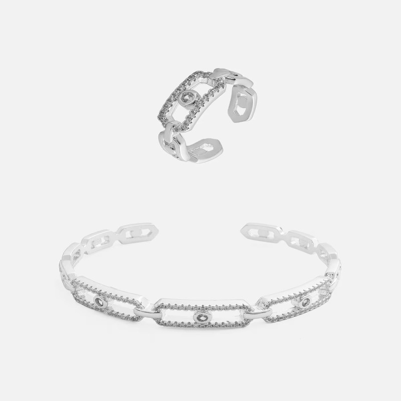 - الـــلــــــــون: الفضي بتصميم كلاسيك مفرغ و مرصع بفصوص وأحجار الزركون اللامع