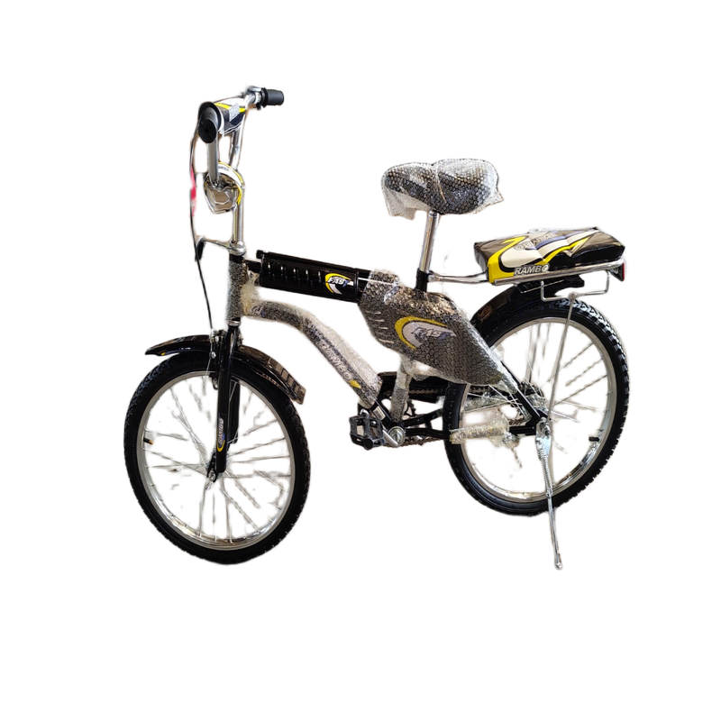دراجة مقاس 20 بوصة مزودة بإطار حديدي (Steel Rim) وإطارات هوائية (Air Tyre).