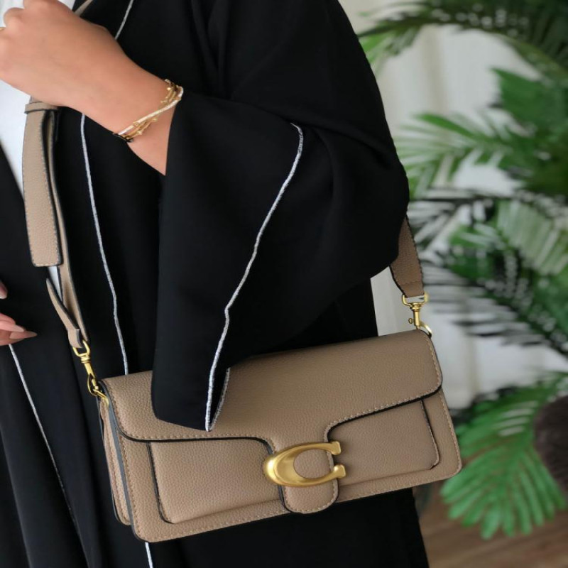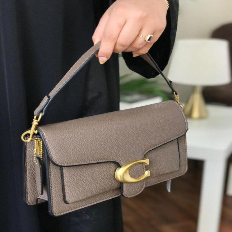 تميّزي بإطلالة راقية مع شنطة كوتش تابي COACH طبق الأصل باللون بني شيك وتصميم أنيق بلمسة عصرية. مصنوعة من جلد فاخر محبب وتفاصيل معدنية ذهبية جذابة مع حرف “C” الأيقوني. تأتي بحزامين لتناسب جميع الأذواق والمناسبات.