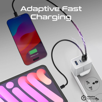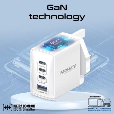 يحتوي شاحن Promate GaNPort4-67PD على منفذ QC 3.0 يوفر طاقة تصل إلى 22.5 واط، مما يتيح لك شحن مجموعة متنوعة من الهواتف الذكية والأجهزة اللوحية بسرعة. تقنية Quick Charge 3.0 تتيح شحن الأجهزة المتوافقة بنسبة تصل إلى 80% في 35 دقيقة فقط، وهو أسرع بأربع مرات من الشواحن التقليدية.