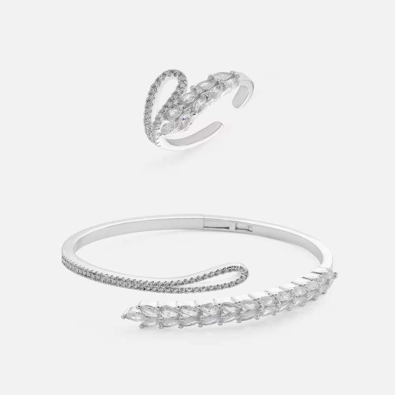 - الـــلــــــــون: الفضي بتصميم جذاب متداخل و مرصع بفصوص وأحجار الزركون اللامع