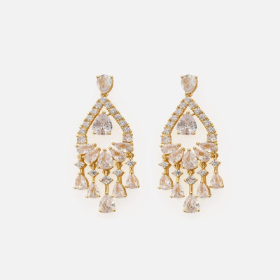 - التفاصيل: حلق بتصميم بشكل دمعة مفرغة و مرصعة بأحجار الزركون البراقة تضفي لمسة من الجاذبية