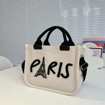 - التفاصيل: شنطة من القماش بتصميم عصري تتزين بطبعة عبارة باريس