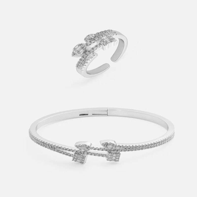 - الـــلــــــــون: الفضي بتصميم ملفت و مرصع بفصوص وأحجار الزركون اللامع