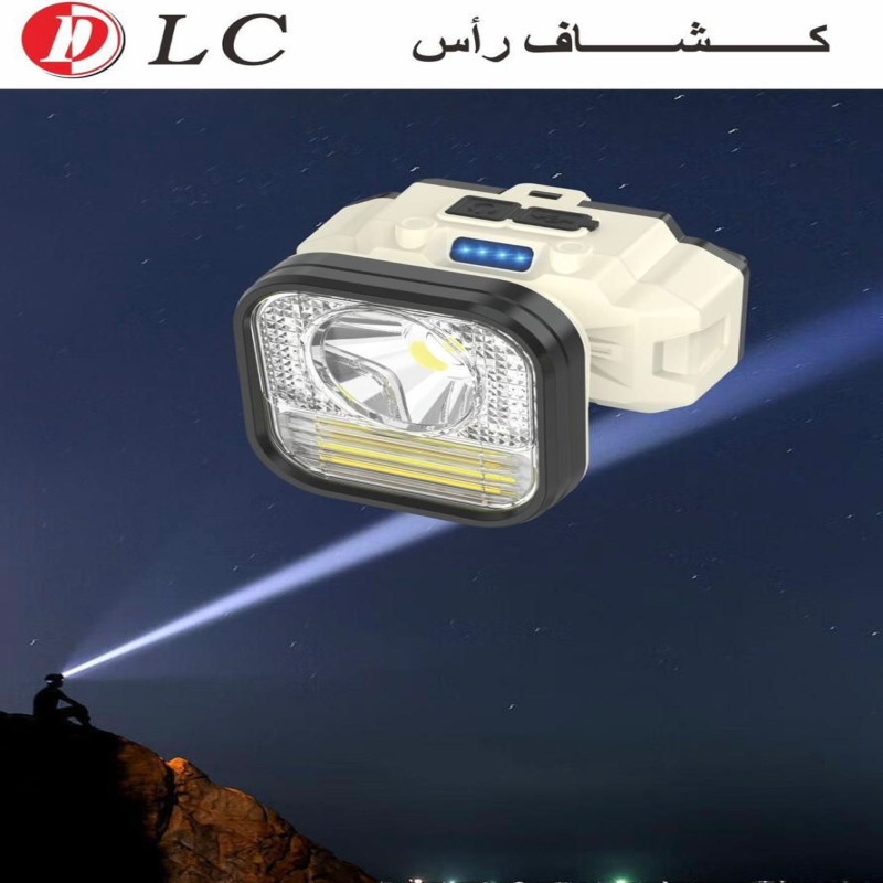 مصباح أمامي احترافي بتصميم عصري يجمع بين الأداء العالي والعملية، مثالي للتخييم، الصيد، العمل الليلي، وركوب الدراجات.