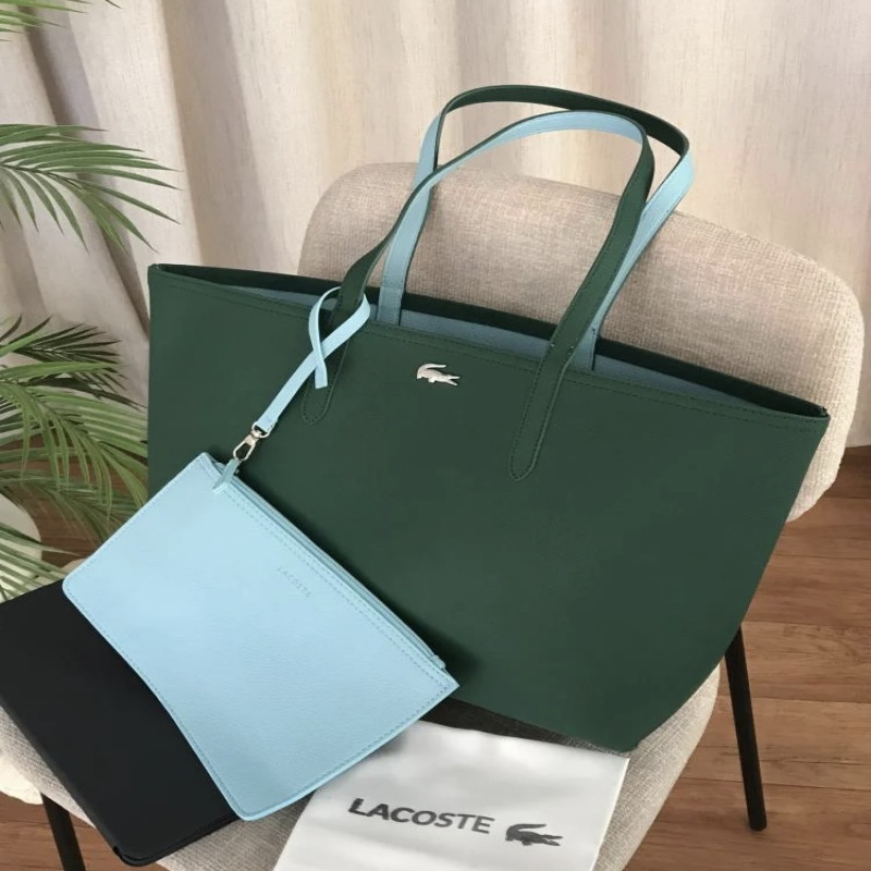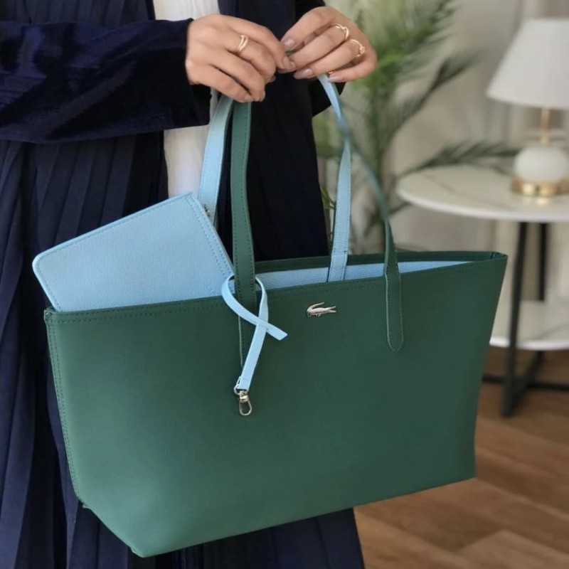 شنطة لاكوست دبل فيس Lacoste – أخضر زمردي × أزرق سماوي (حجم كبير)