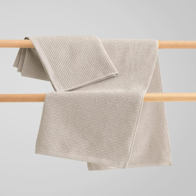 - مناشف باللون البيج منشفة وسط بمقاس 70X140 ومنشفه للمغسلة بمقاس 50X90