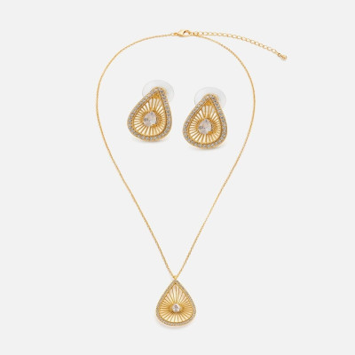 - سلسال وحلق بتصميم حلية بشكل دمعة بلون فضي مرصعة بفصوص الزركون البراقة تضفي لمسة من الجاذبية