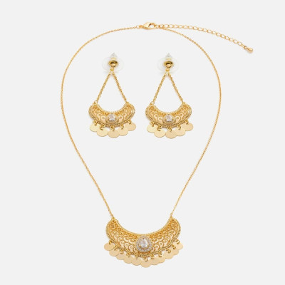 - يتميز الطقم بتصميم حلية بشكل مميز مرصعة بفصوص الزركون البراقة بلون فضي تضفي لمسة من الجاذبية