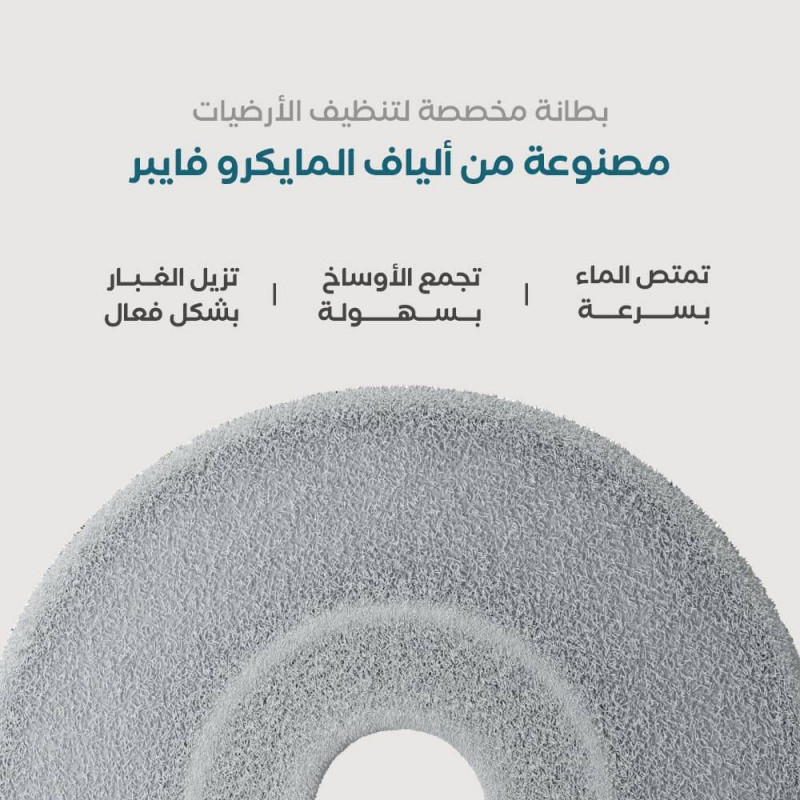 دائرى الشكل مصنوعة من الألياف الدقيقة تمتاز بقوة امتصاص عالية للسوائل وتزيل الغبار والأوساخ ولا ينتج منها الوبر، تناسب جميع أسطح الأرضيات وقابلة للغسيل والاستخدام المتكرر.