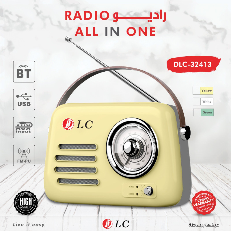 راديو كلاسيكي بتقنيات حديثة لعشاق الطابع الفينتاج. جمع بين المظهر العتيق والأداء العصري، حيث يمكنك الاستمتاع بصوت واضح مع دعم البلوتوث، USB، ومدخل AUX. يعمل على بطارية قابلة لإعادة الشحن ويأتي بتصميم مميز باللون البرتقالي الباهت.