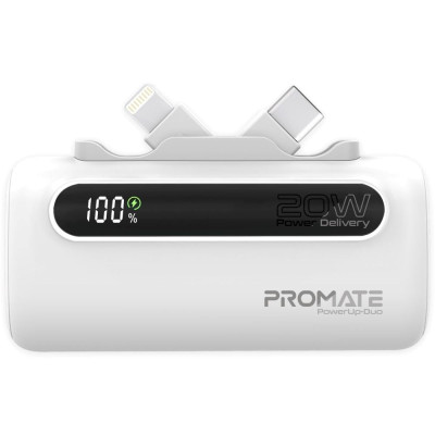 PowerUp-Duoهي بطارية متنقلة صغيرة للغاية على شكل كبسولة، مع منفذ USB-C™ (إدخال/إخراج)، وموصلين مدمجين قابلين للطي، USB-C™ و لايتنينغ ، لشحن جهازين بسرعات فائقة أثناء التنقل. يتميز بنك الطاقة المتعدد الاستخدامات هذا بسعة 5000 مللي أمبير ومنفذ USB-C™ (إدخال/إخراج)، مما يتيح لك شحن البطارية المتنقلة بسرعة وكفاءة.
