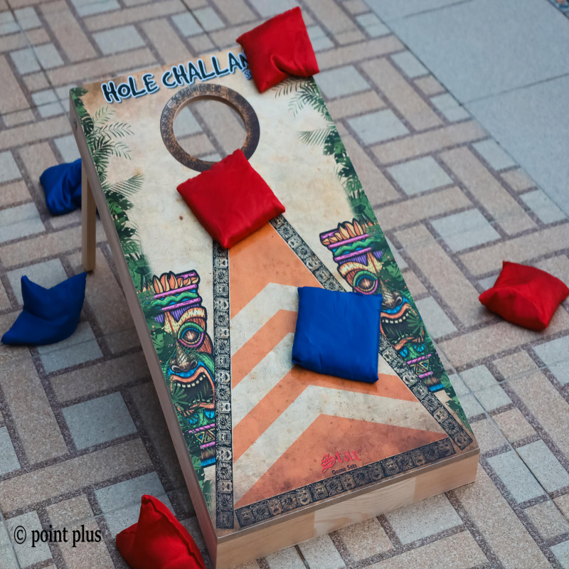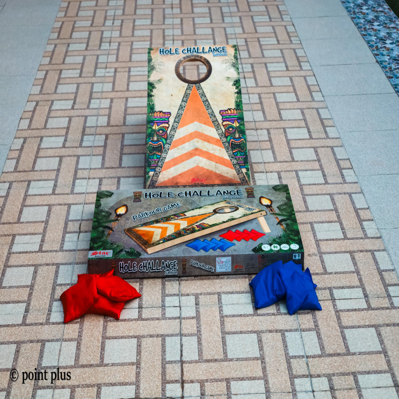 لعبة التسديد في الفتحة لعبة جماعية وحركية ممتعة سهل الحمل والتنقل بها مصنوعة من خشب عالي الجودة يمكن اللعب مع مجموعة او مفرد حقا تستحق التجربة استعد للمرح مع بوينت بلس