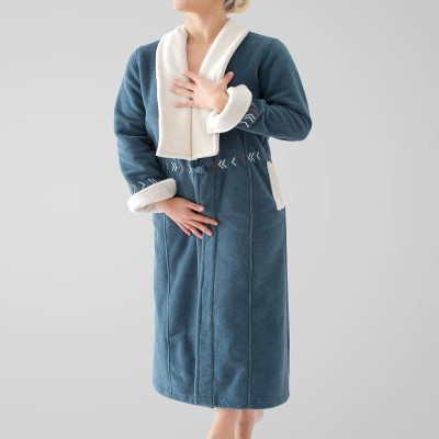 - روب استحمام بتصميم شتوي باللون الأزرق المطرز و الأبيض