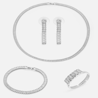 - يتميز الطقم بتصميمه الذي يتزين بحلي متتابعة مرصعة بفصوص و أحجار من الزركون اللامع