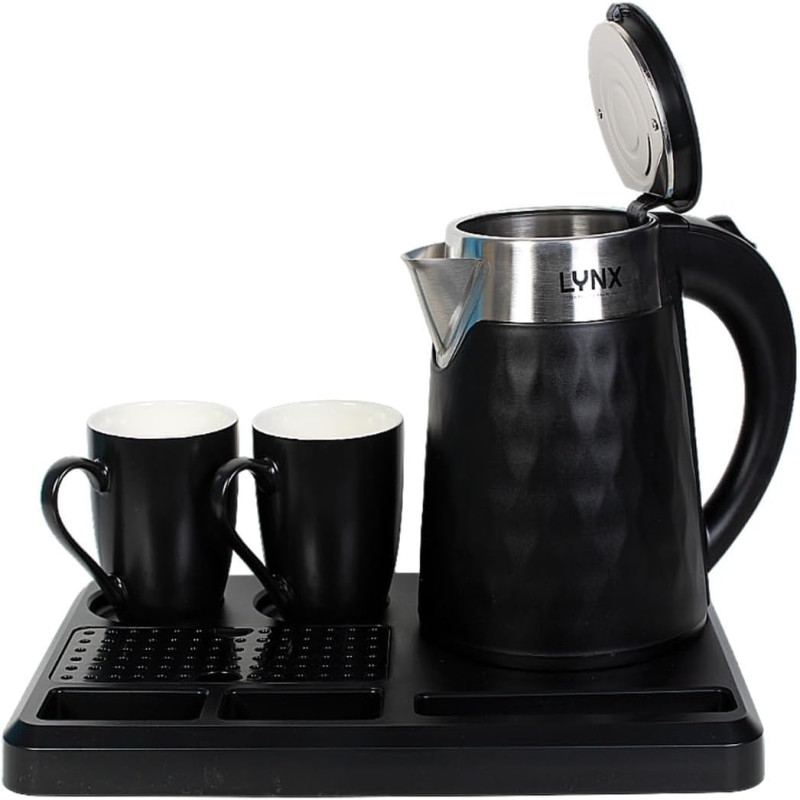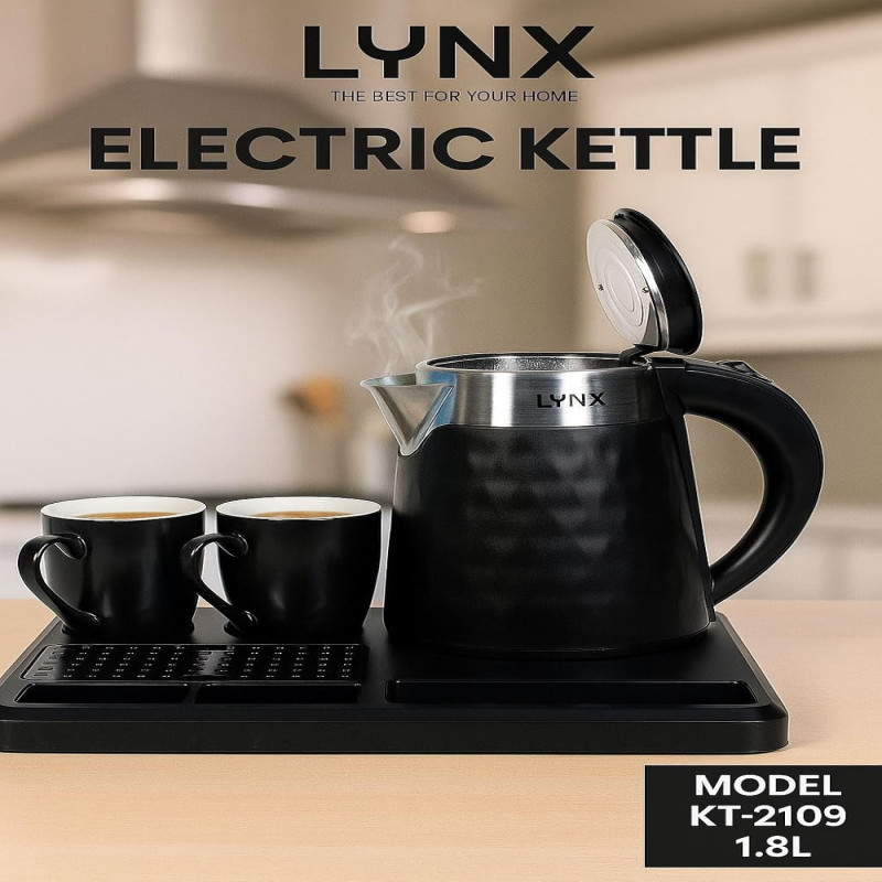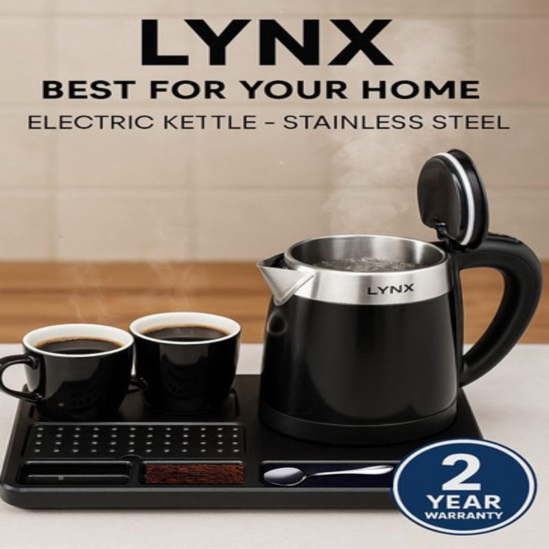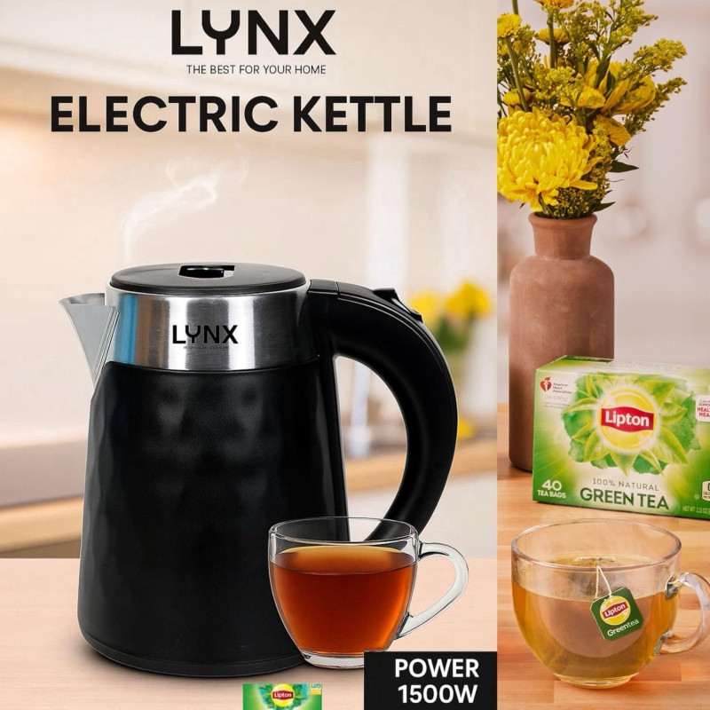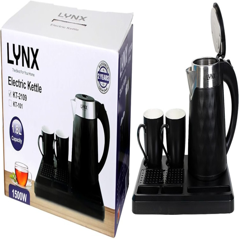 غلاية كهربائية بقوة 1500 واط لغلـيان سريع وآمن. تصميم أنيق من ستانلس ستيل مع كوبين للشاي، مثالية للمنزل أو المكتب أو كهدية.