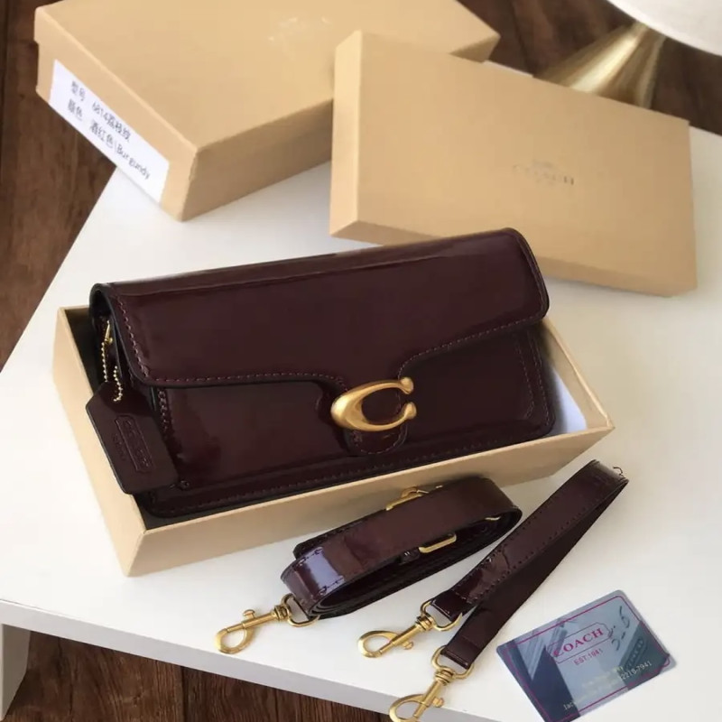 شنطة كوتش تابي COACH طبق الأصل بلون عنابي لامع أنيق، مصنوعة من جلد فاخر محبب بجودة عالية، تصميم راقي وعملي للإطلالات اليومية والمناسبات. مزودة بإغلاق مغناطيسي بحرف “C” الذهبي الأيقوني، وحزام طويل قابل للتعديل.