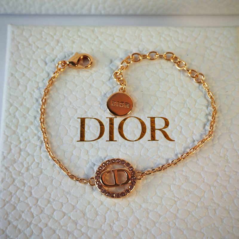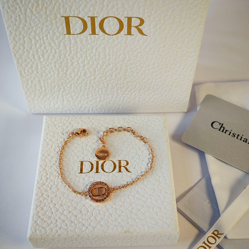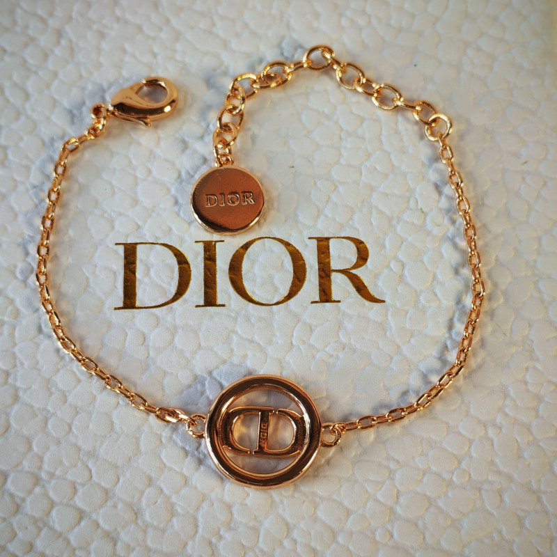 اسوارة أنيقة مطلية باللون الروز قولد، بتصميم راقي يحمل شعار CD الأيقوني داخل دائرة أنثوية بسيطة تعكس الفخامة والنعومة في آن واحد.